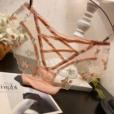 私房诱惑~日系性感内裤女蕾丝低腰绑带刺绣纯欲女士三角内裤薄款