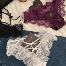 密语私物蕾丝内裤女低腰性感绑带裙摆蕾丝边透视诱惑火辣三角底裤