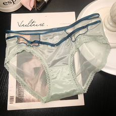 桑蚕丝性感内裤女 细带蕾丝裤头 镂空透明低腰秋冬诱惑女士三角裤