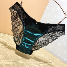 轻奢缎面蕾丝内裤女性感中低腰时尚绑带透明透视火辣诱惑三角裤