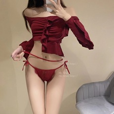 腰精新款本命年红色性感蕾丝内裤女纯欲绑带诱惑情调低腰三角裤