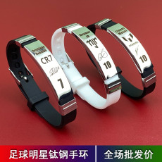C罗足球手环梅西内马尔贝克汉姆卡卡腕带硅胶男女可调节钛钢手链