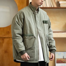 工装军旅夹克衫男秋冬新品纯棉多口袋立领外套潮流修身加绒帆布衣