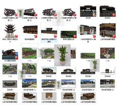 现代新中式独栋别墅建筑外观联排乡村农村自建房主体su模型素材