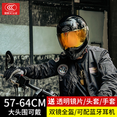 3C认证复古摩托车全盔男双镜蓝牙秋冬季个性机车踏板巡航复古头盔