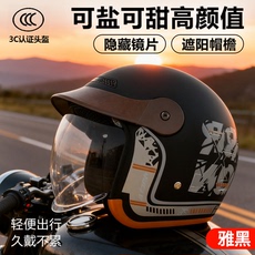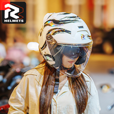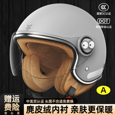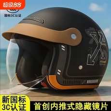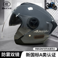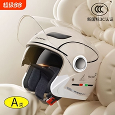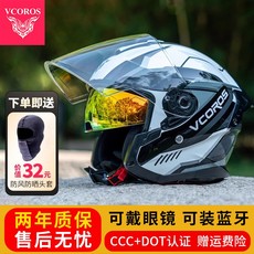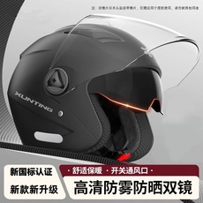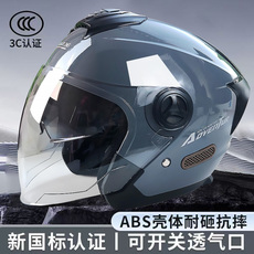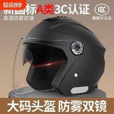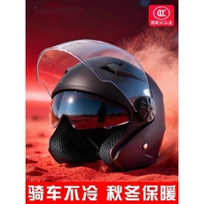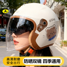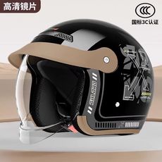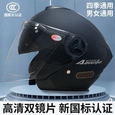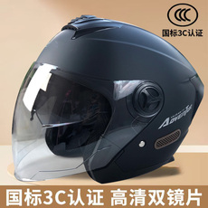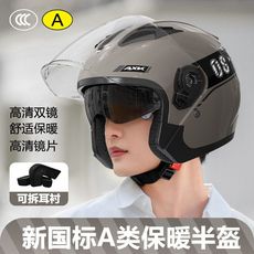 3C认证摩托电动车头盔男女款四季通用双镜半盔骑行安全帽冬季保暖