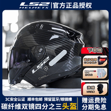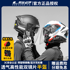 LS2摩托车头盔半盔四分之三盔双镜片男女款四季机车赛车冬季OF626