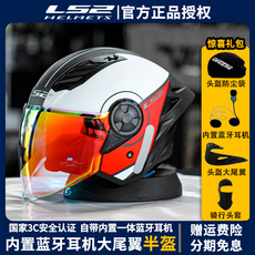 LS2摩托车头盔带内置蓝牙耳机四季半盔大尾翼男女机车3C认证冬季