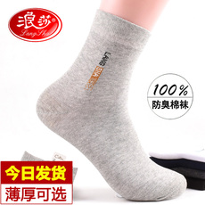 浪莎袜子男士纯棉防臭吸汗透气中筒袜男春秋季全棉运动袜棉袜男袜