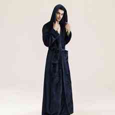 睡袍男士冬季加厚加绒珊瑚绒夹棉袄保暖浴袍睡衣法兰绒秋冬款冬天