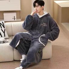 冬季加绒加厚珊瑚绒男士睡衣男款睡袍青少年学生卡通家居服秋冬款