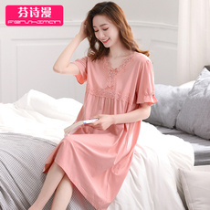 带胸垫睡裙女士睡衣夏季莫代尔短袖中长裙薄款冰丝孕妇夏款连衣裙