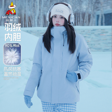 稻草人蓝色冲锋衣羽绒服女2025新款内胆防寒滑雪服三合一加厚外套