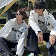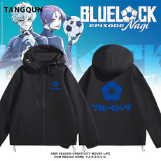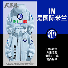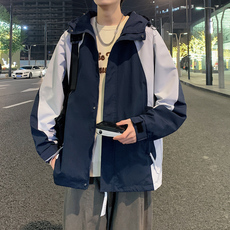 公鸡冠军蓝灰撞色风衣男秋季宽松连帽插肩复古运动户外冲锋外套潮