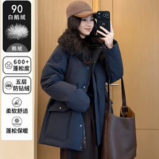 巨好看藏蓝色派克鹅绒服女小个子时尚流行轻型保暖冲锋衣羽绒外套