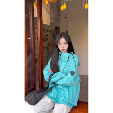 明星同款熊猫雨壳户外冲锋衣防雨防风三防徒步登山骑行蓝色外套女