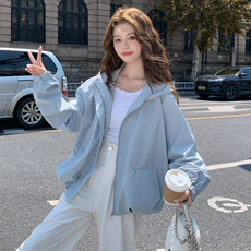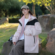 浅蓝色加棉加厚冲锋衣外套女2025秋冬季新款宽松学生休闲连帽棉服