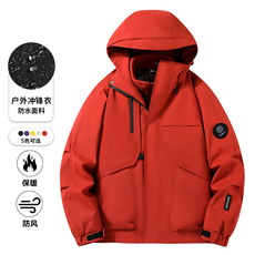 防寒冲锋衣男秋冬加绒加厚劳保服防水防风棉衣外套工作服加棉蓝色
