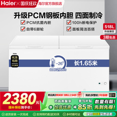 海尔518升大容量冰柜家用商用卧式大冷柜保鲜全冷冻冰箱冷藏柜