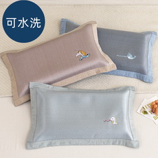 夏季儿童凉席枕套夏天学生冰藤枕头套30x50单个冰丝枕套宝宝枕席