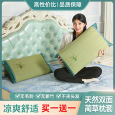 【买一送一】宁波绿色天然草枕套成人单人折叠式凉席枕头套一对装