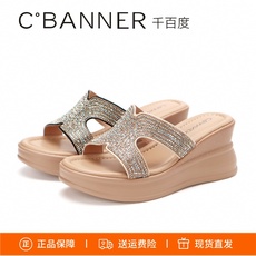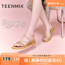 天美意新款坡跟条带外穿舒适简约百搭女凉拖鞋CTI20BT4