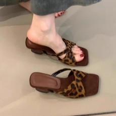 真皮高跟凉拖交叉带防水台全皮粗方跟坡跟拖鞋外贸原单尾货女鞋夏