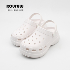 包头洞洞鞋女坡跟花园沙滩鞋果冻凉鞋平底防滑海边度假厚底凉拖鞋