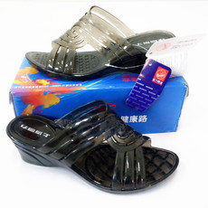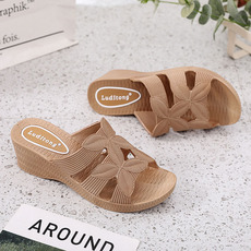 居家用沙滩外出凉拖鞋防滑塑料妈妈坡跟高跟增高拖鞋女夏舒适透气