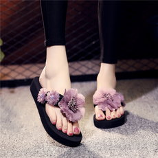 新款中跟坡跟白色厚底人字拖女沙滩凉鞋海边夹脚三亚拖鞋夹趾凉拖