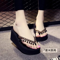 路拉迪人字拖女坡跟夏季中跟厚底外穿夹脚凉拖鞋海边防滑沙滩鞋潮