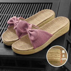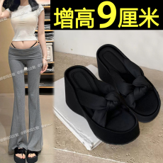 高级感拖鞋女夏高跟厚底百搭蝴蝶结沙滩防滑坡跟凉拖鞋增高7厘米