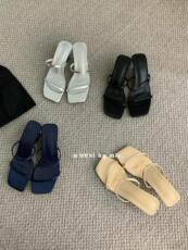 韩版蝴蝶结高跟凉拖女夏季高级感绸缎面水钻鱼嘴一脚蹬半拖鞋坡跟