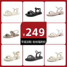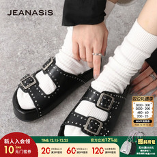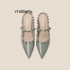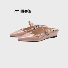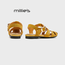 MILLIE'S/妙丽平底铆钉镂空罗马凉鞋女2025夏款圆头一字带休闲鞋