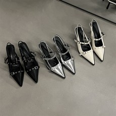 名媛风2025年夏季新款浅口时尚铆钉尖头鞋细跟高跟鞋一字扣凉鞋女