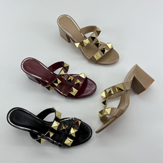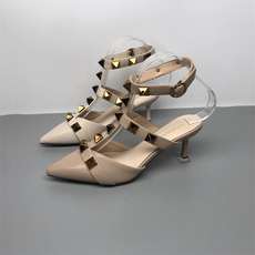 2023春夏新款尖头高跟铆钉凉鞋后空浅口铆钉时尚百搭辣妹高街女鞋