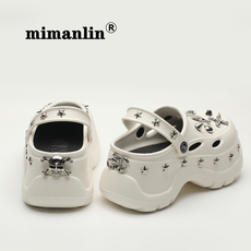 潮牌增高跟洞洞鞋女士2024新款夏季外穿防滑时尚厚底铆钉两穿凉鞋