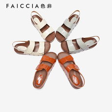 夏季真皮40-43大码通勤新款厚底魔术贴铆钉软底韩系露趾中跟凉鞋