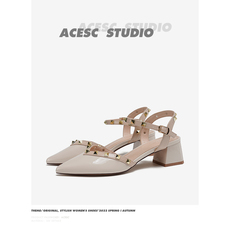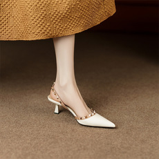 2025年高跟鞋夏季新款包头后空凉鞋女铆钉高级感小众法式尖头粗跟