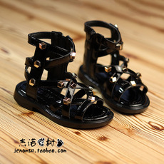 女童罗马凉鞋两岁半-6-9-13岁夏款黑色洋气铆钉中小童高帮凉靴潮8