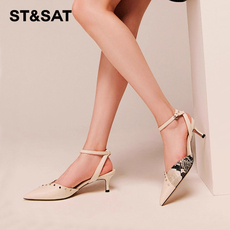 St&Sat/星期六春夏羊皮铆钉尖头细高跟包头凉鞋女SS32114727