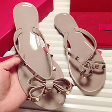 夏季新款蝴蝶结铆钉夹脚平底人字拖鞋女防滑果冻沙滩鞋凉鞋女大码