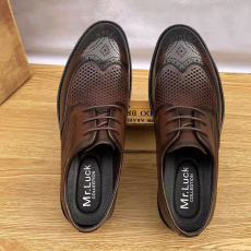 夏季镂空凉鞋皮鞋中老年头层牛皮休闲软底透气内增高鞋洞洞鞋男鞋