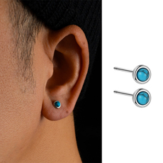 立体怪物 S925银简约蓝色圆形耳钉男女几何轻奢通勤绿松石耳饰