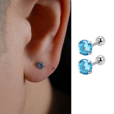 立体怪物 蓝钻螺纹S925银耳钉男女几何小巧气质女韩系养耳洞耳饰