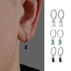 立体怪物 几何多色S925小巧男女百搭耳环方块吊坠耳圈绿方糖耳饰
