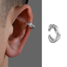 立体怪物 拉丝缠绕S925通体男女简约耳夹镂空ins编织几何轻奢耳饰