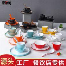 密胺创意火锅店专用摆台四件套餐具商用仿瓷餐厅饭店碗碟勺杯套装
