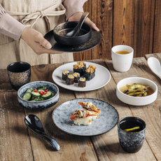 巷子尾〖超赞!8件套餐具〗复古水纹饭碗西餐盘陶瓷碗盘套装送礼