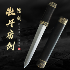 龙泉古羽宝剑黑檀小唐剑手工锻打花纹钢高硬度剑短剑小剑 未开刃